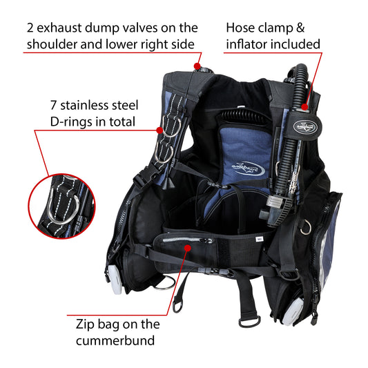 Unleash your underwater potential with our budget-friendly BCDs, perfect for beginners. Designed with all the essentials and available in various sizes for divers of any age. Dive into quality without compromising on price!