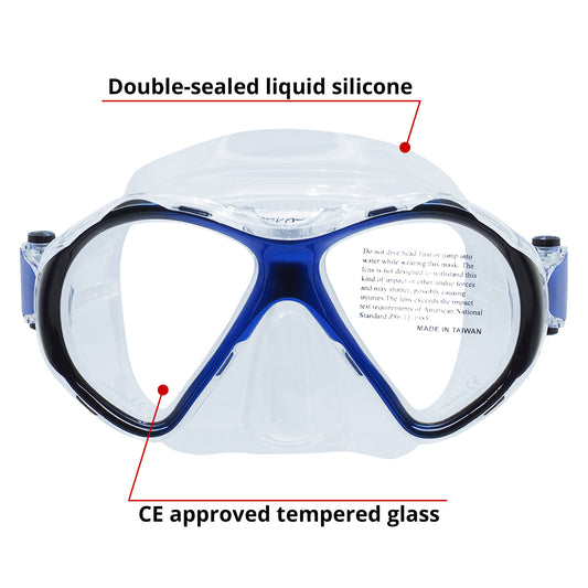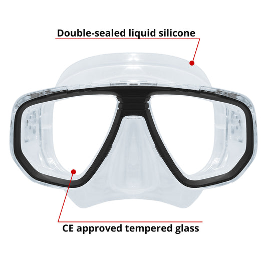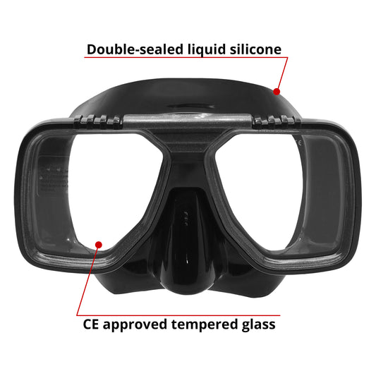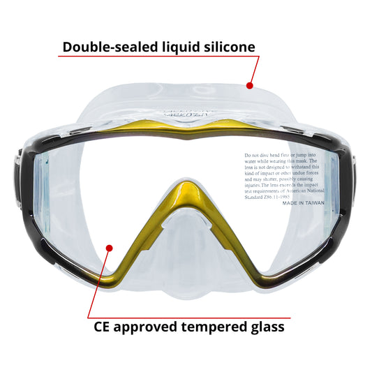 Explore our range of masks, from one to three windows, framed to frameless. Find the perfect fit for your face, vision, and style. Crafted with high-quality liquid silicone and CE tempered glass for comfort and safety.