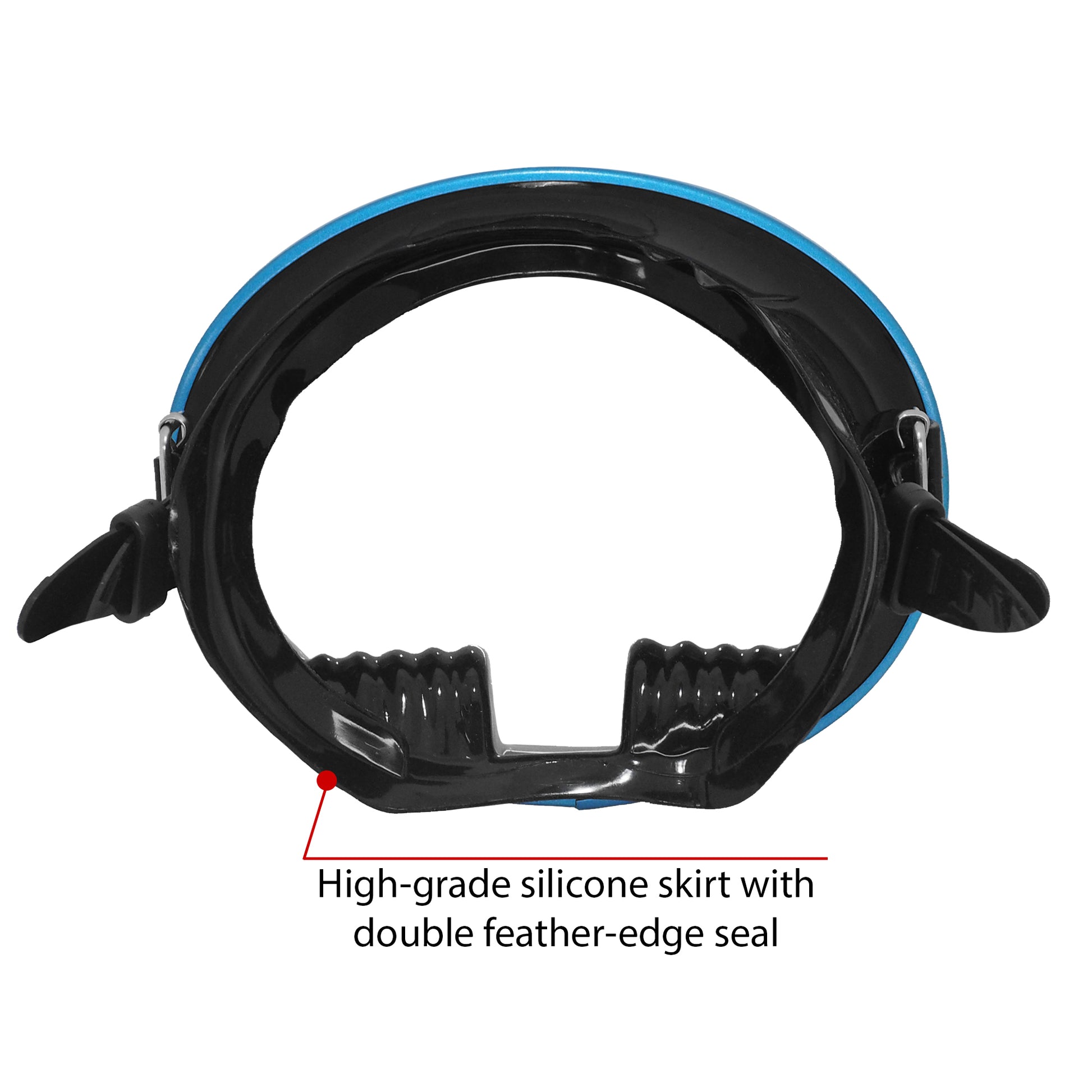 The traditional oval shape design also allows easy equalization. Ideal for freediving, spearfishing, and underwater photography.