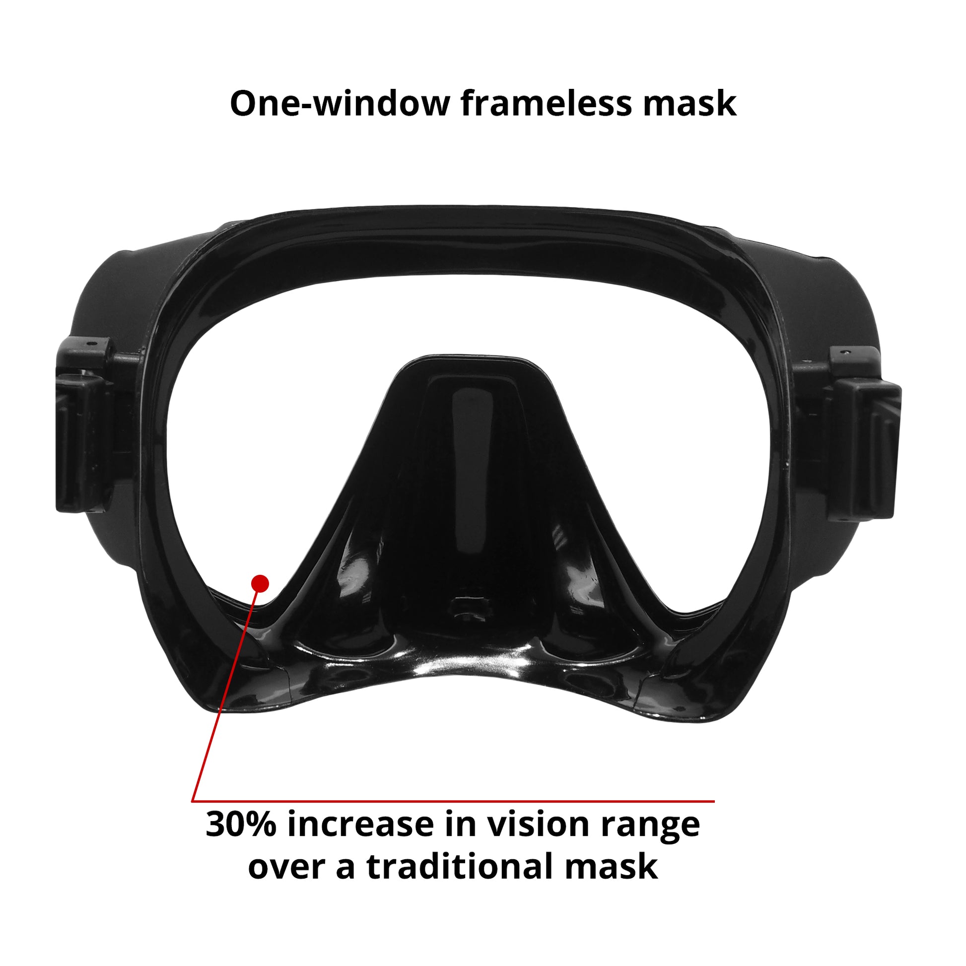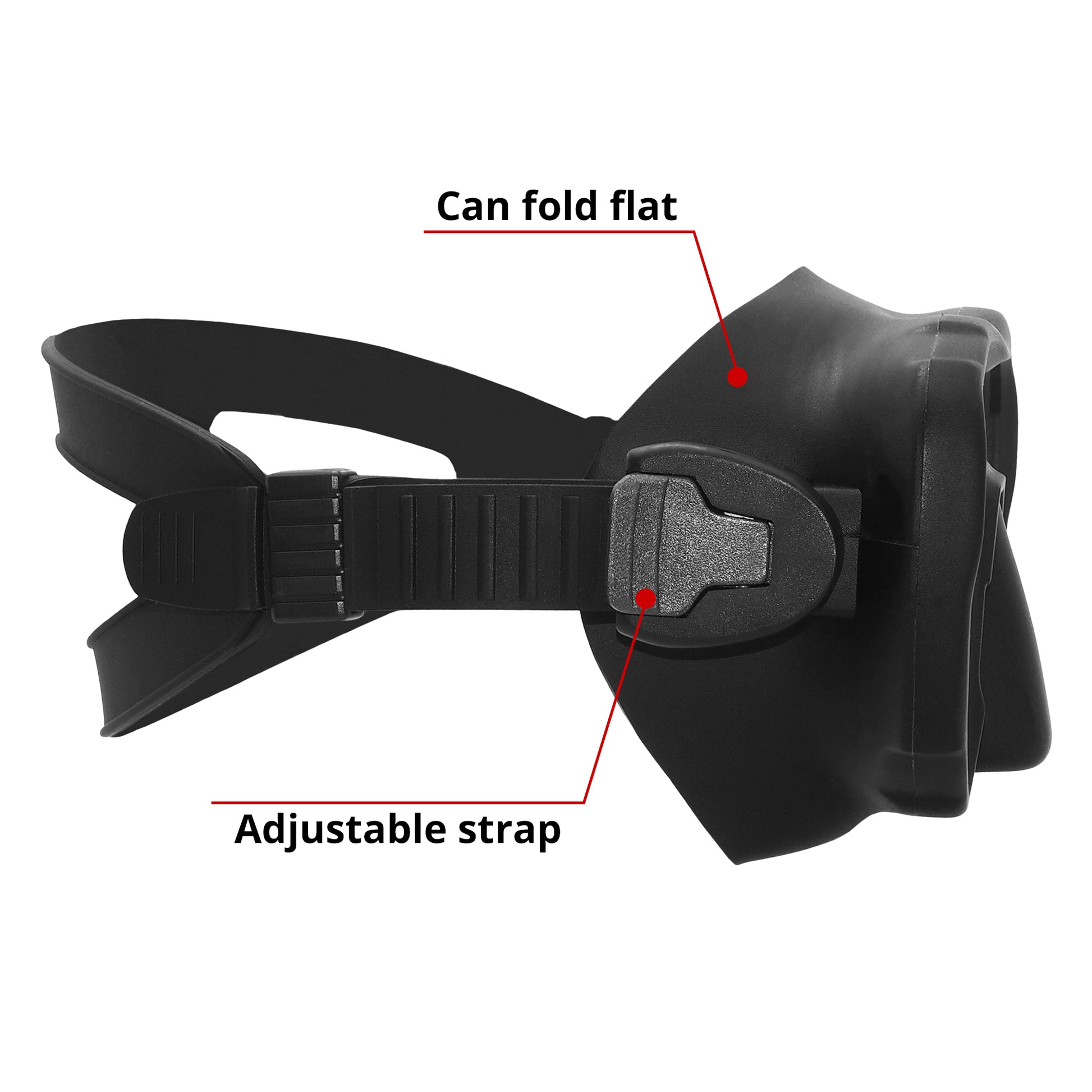 Enhance your underwater experience with our Wide View & Foldable diving mask, designed to revolutionize your vision underwater. The one-window frameless design provides a remarkable 30% increase in vision range compared to traditional masks, ensuring a more immersive and panoramic view. Additionally, its foldable feature allows for convenient flat storage, making it an ideal choice for on-the-go adventurers.